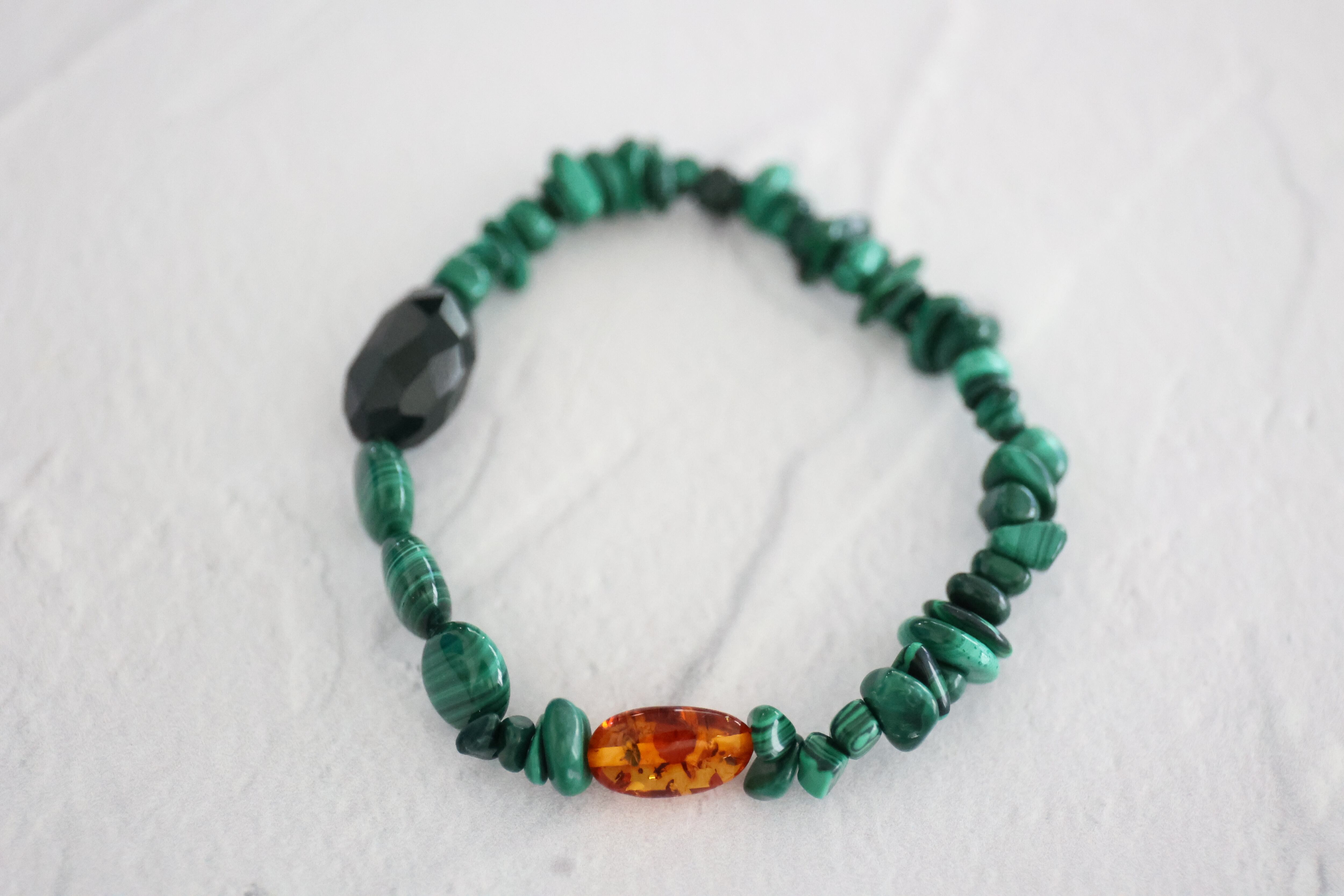 コイン型とさざれ形のマラカイトを組み合わせ、