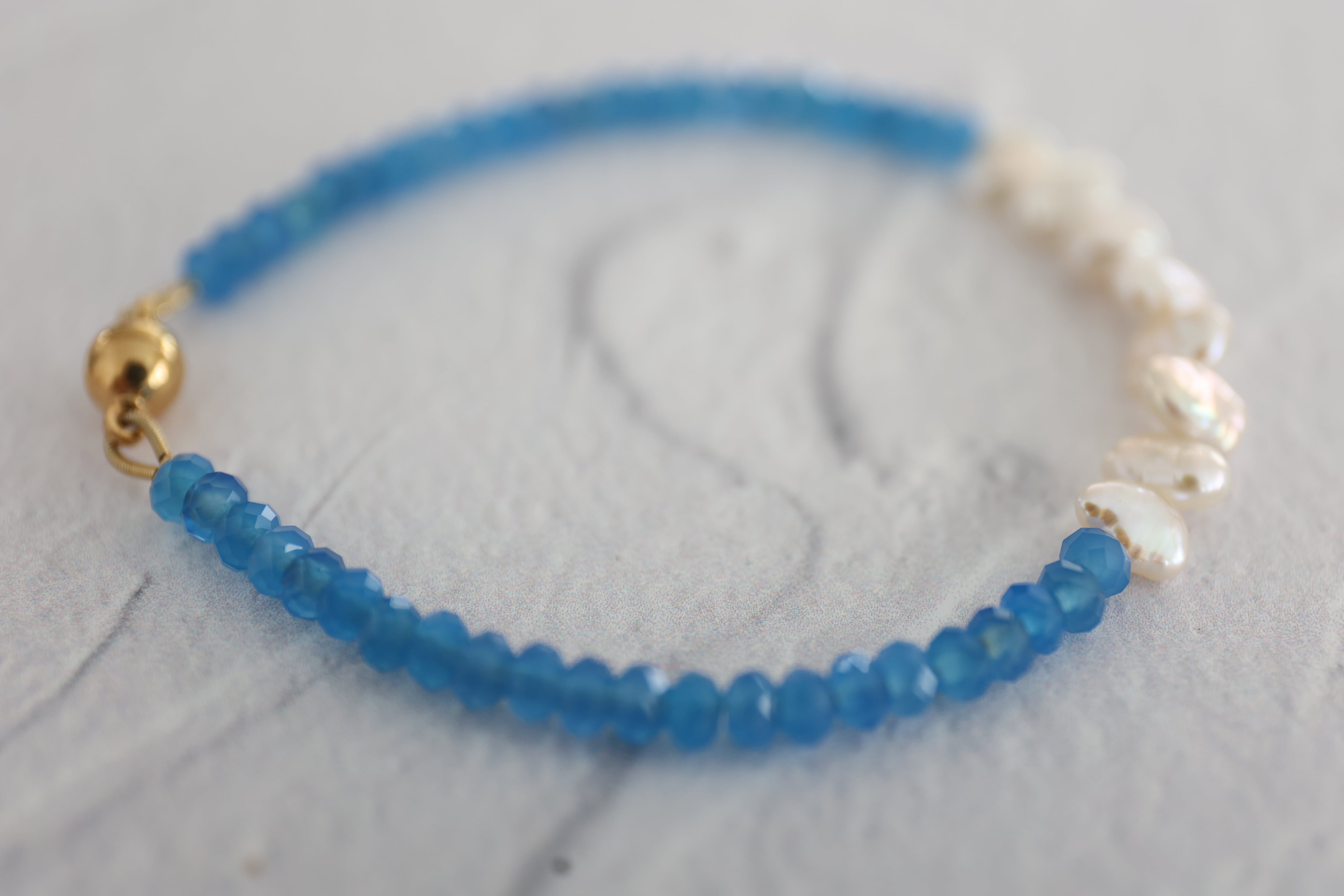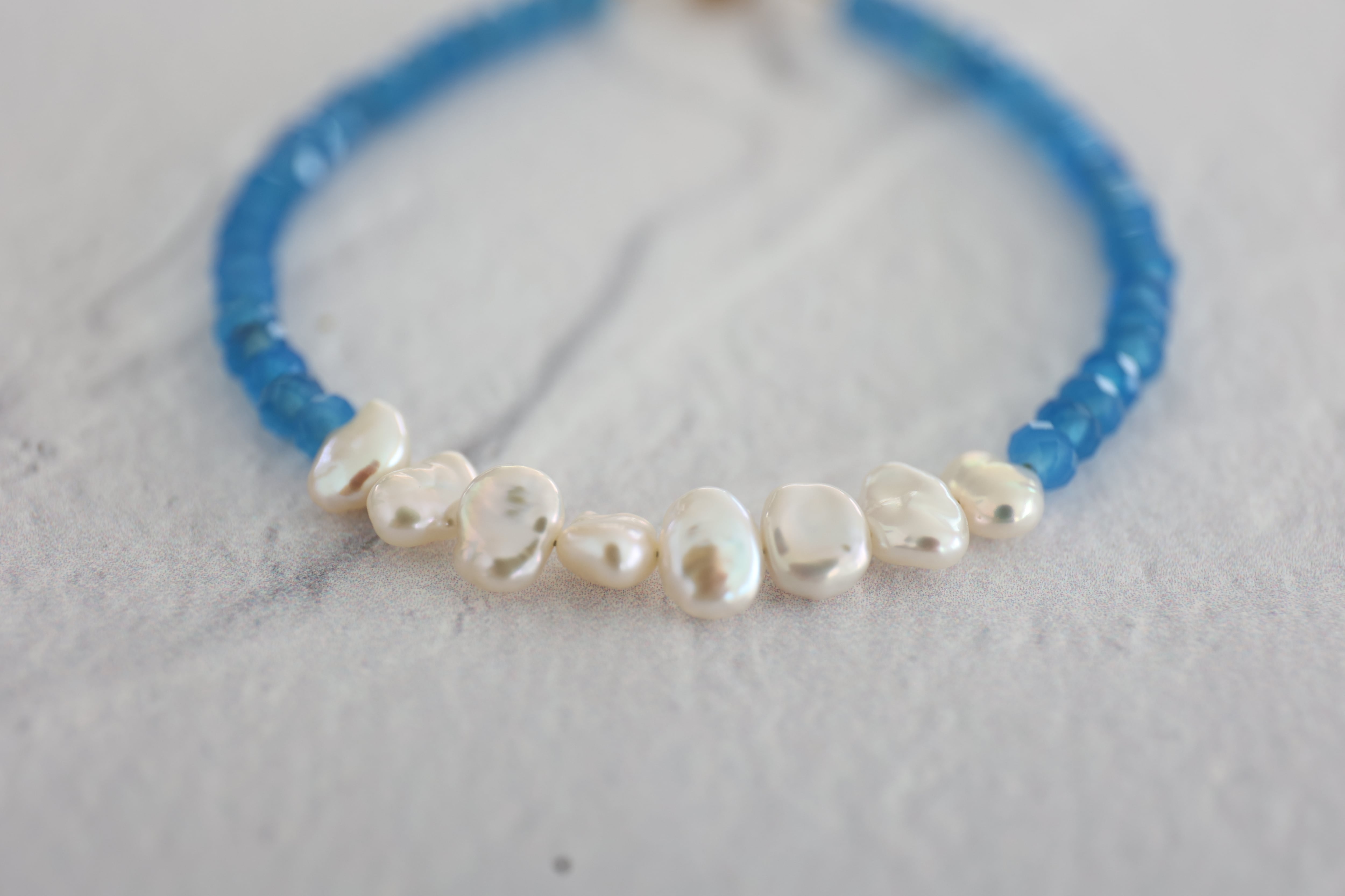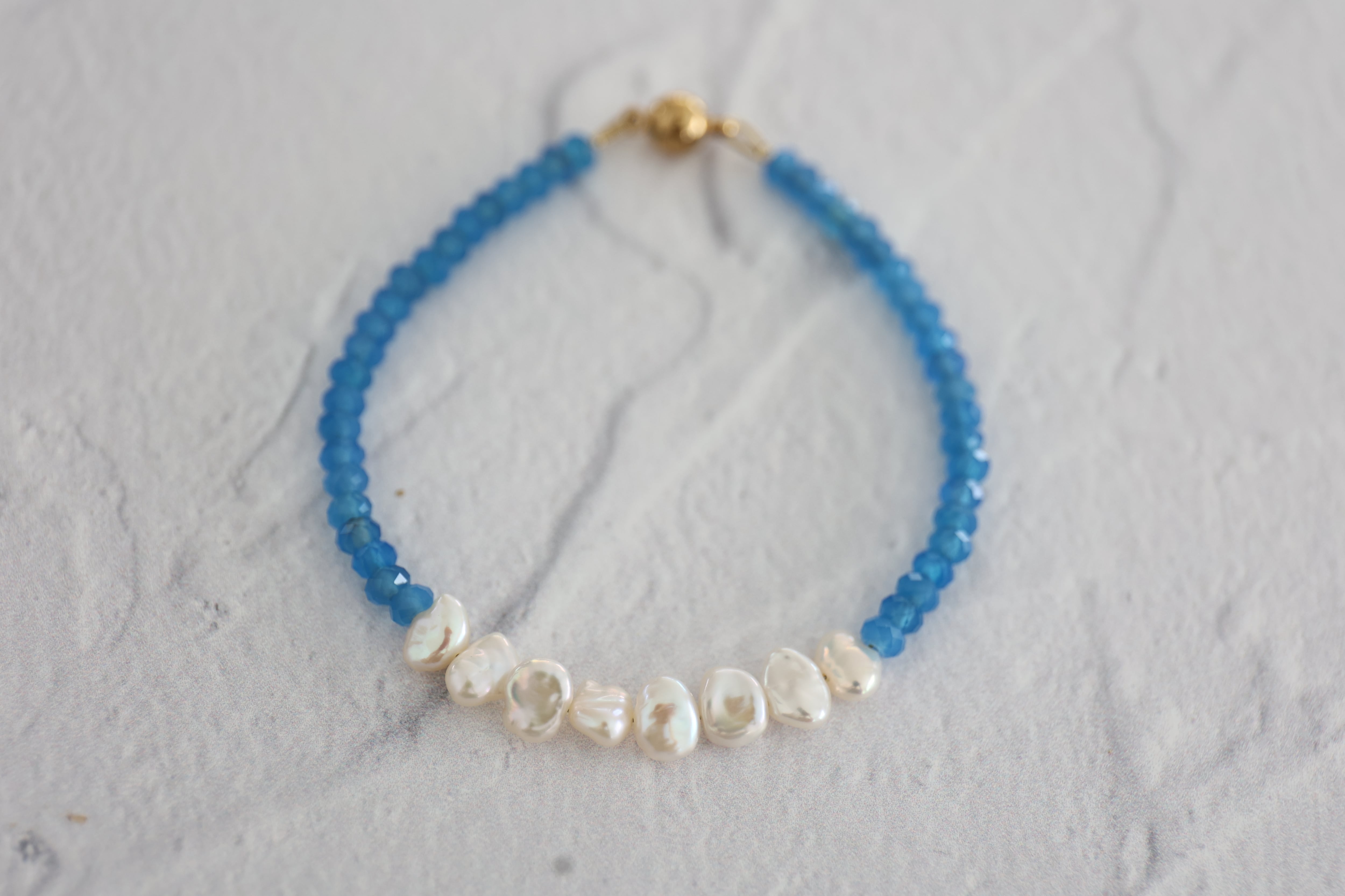 くっきりした青空のような色合いの青瑪瑙(ブルーアゲート)のブレスレットです。