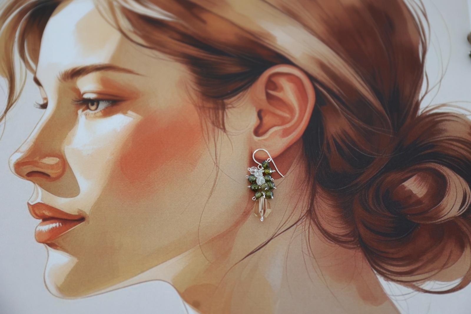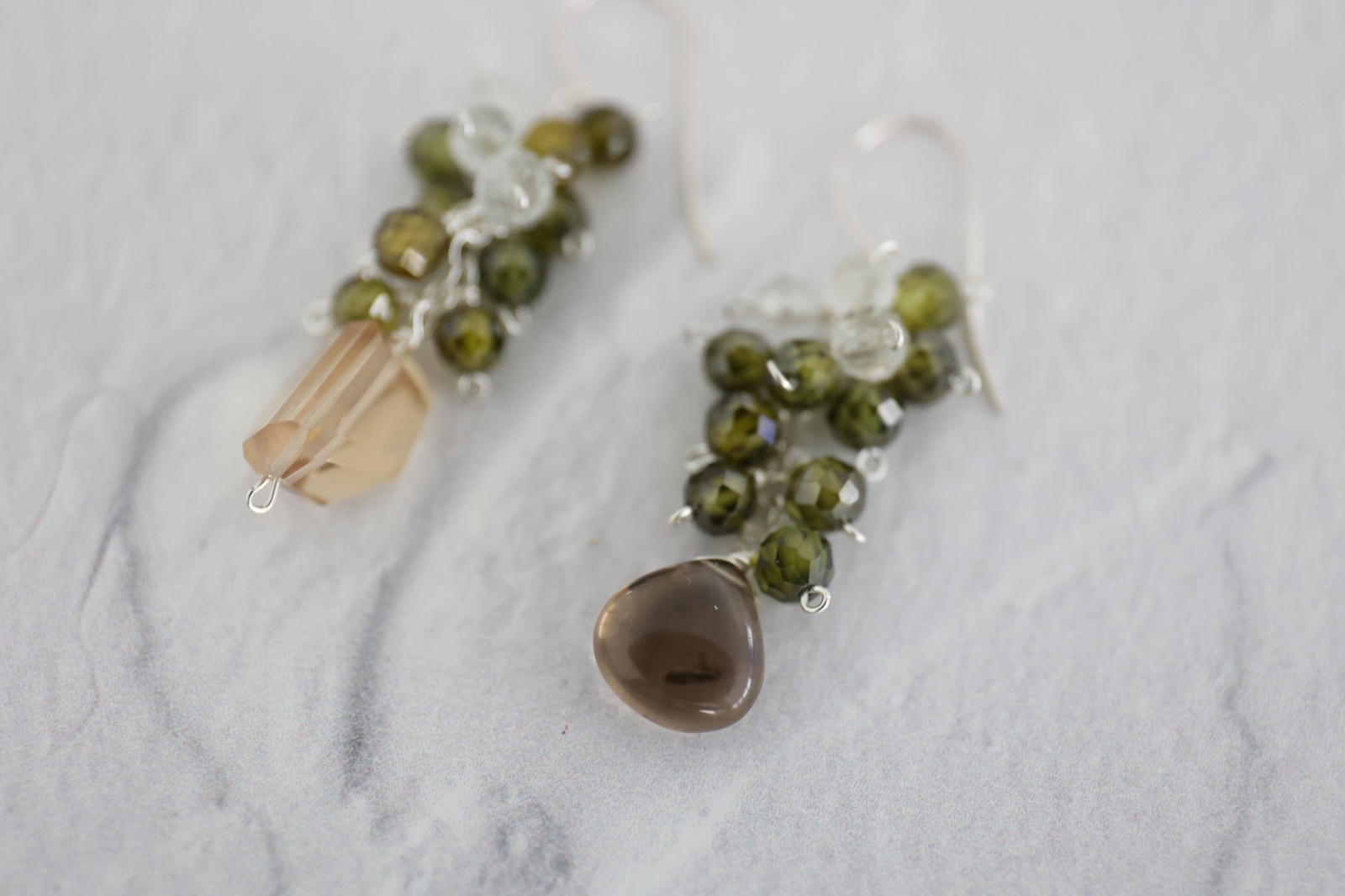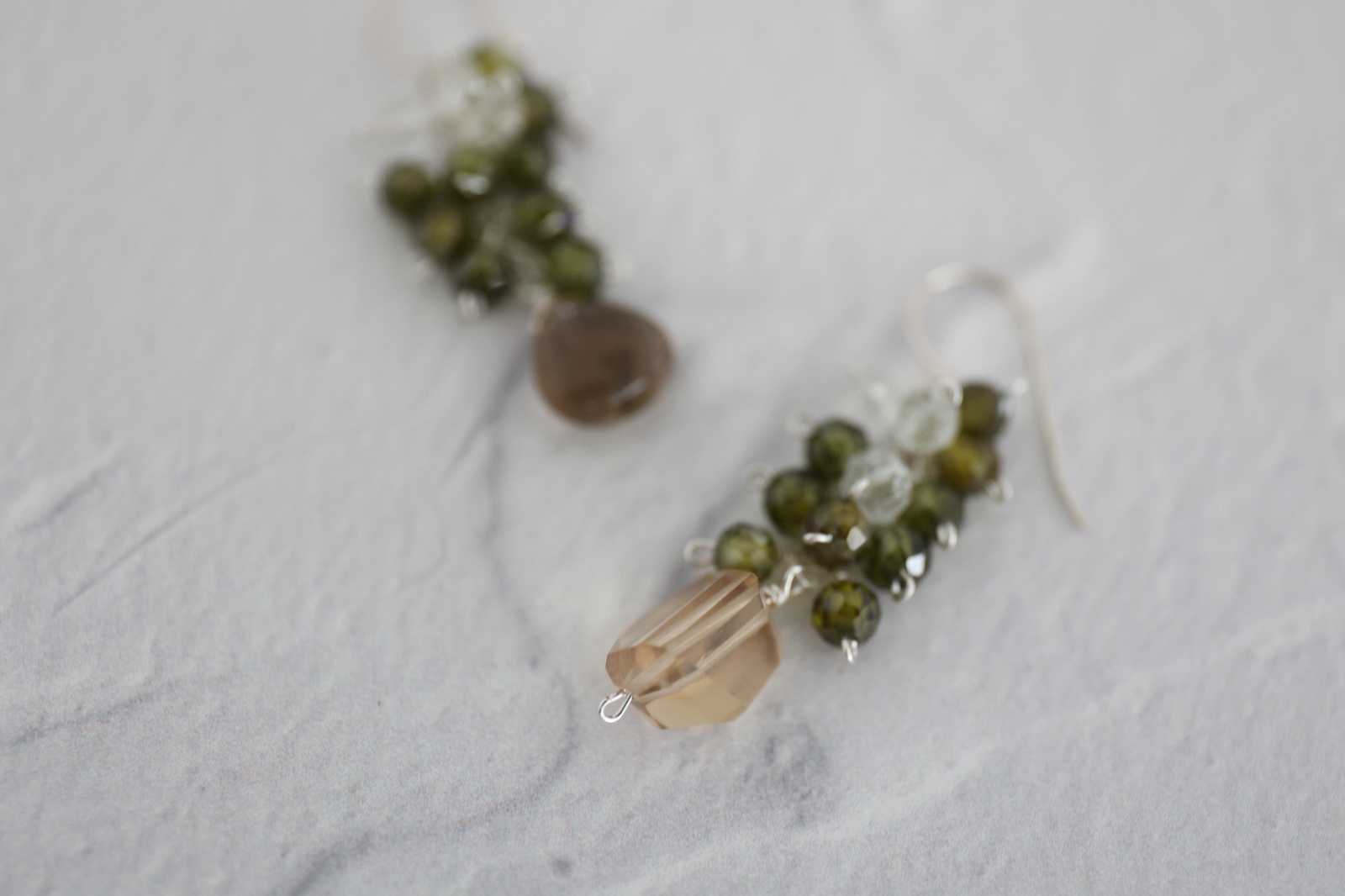 深みのあるモスグリーンのキュービックジルコニアとトパーズは4mmの小ぶりサイズで繊細に輝き、