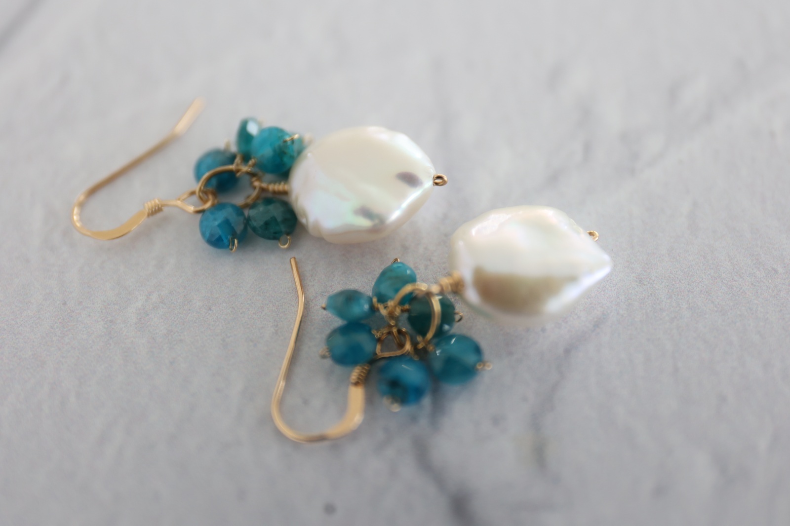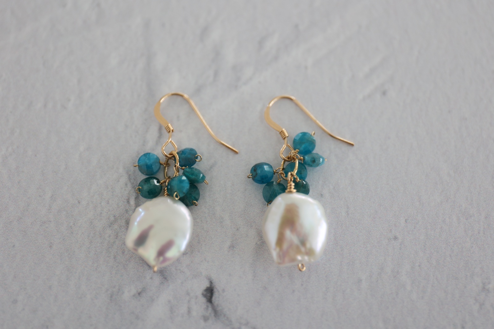深い湖を思わせるブルーアパタイトは、ミラーカットが施され、