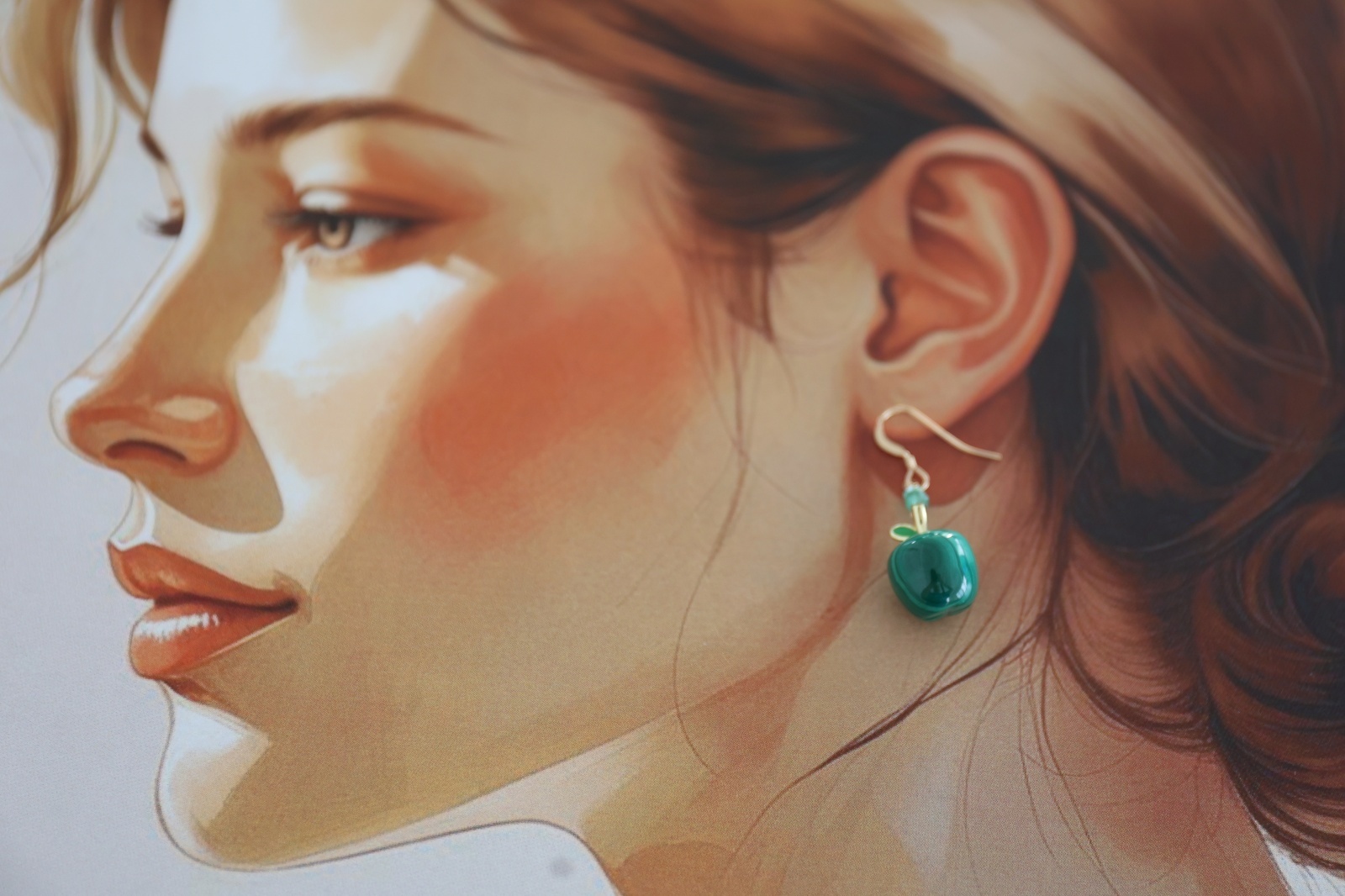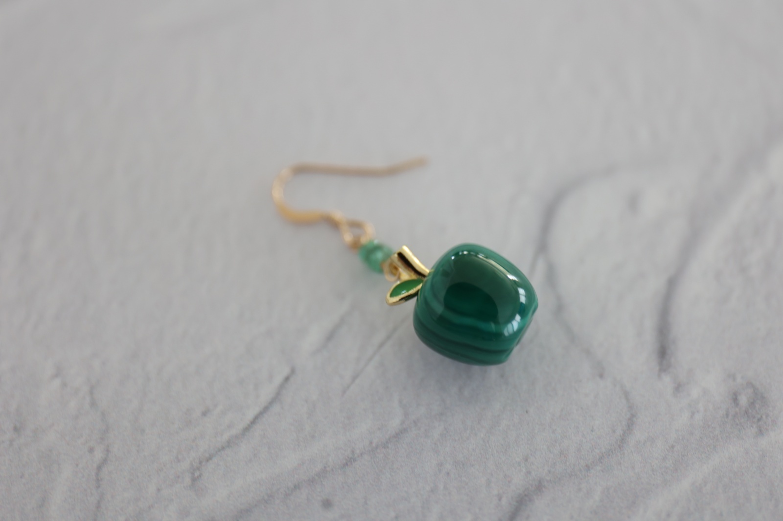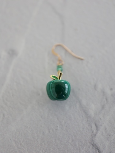 りんごの形が可愛らしいマラカイトのピアスです。